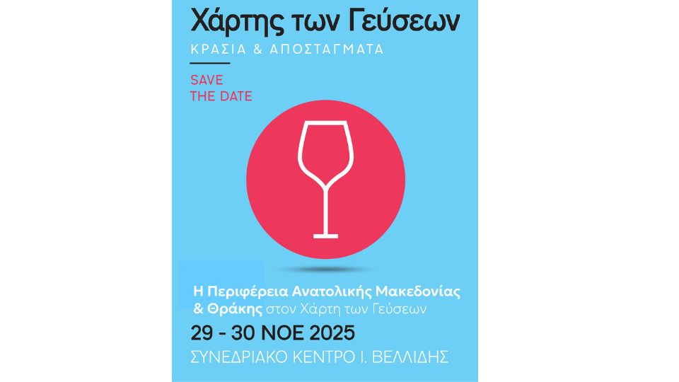 Στο πλαίσιο της συμμετοχής της ΠΑΜΘ στον «Χάρτη των Γεύσεων» θα λάβει χώρα ειδική Press Conference το Σάββατο 29 Νοεμβρίου 2025, ώρα 12:30 μ.μ., στην αίθουσα Colombus του συνεδριακού κέντρου, όπου θα παρουσιαστούν τα κρασιά, οι τοπικές ποικιλίες, οι παραγωγοί και η σύγχρονη οινική ταυτότητα της Ανατολικής Μακεδονίας και Θράκης.