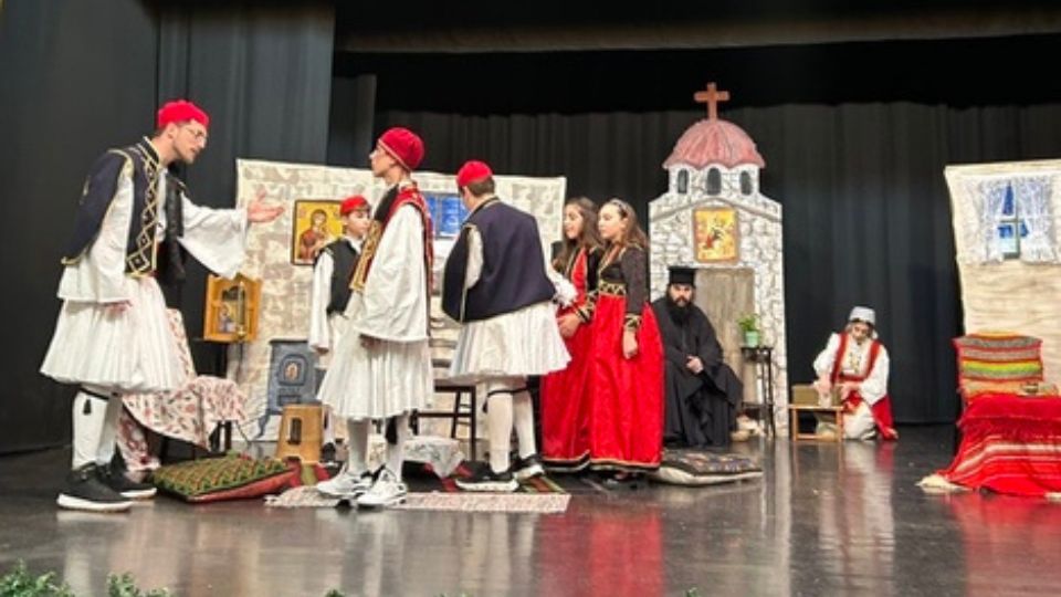 Στο δεύτερο μέρος, τα παιδιά του κατηχητικού παρουσίασαν το θεατρικό έργο “Ἡ Φλόγα της Ελευθερίας – Τα Τελευταία Χριστούγεννα του Μεσολογγίου”. Το ερασιτεχνικὸ αυτό έργο μετέφερε τους θεατές στα Χριστούγεννα του 1825, όπου οι πολιορκημένοι Μεσολογγίτες γιόρτασαν τη Γέννηση του Χριστού χωρίς ψωμί αλλά με ακλόνητη πίστη. Μέσα από τους χαρακτήρες του έργου αναδείχθηκε ἡ δύναμη της νεότητας στις δυσκολίες, ἡ εσωτερική απελευθέρωση που προσφέρει ἡ μετάνοια καθώς και η παρουσία του Θεού ακόμη και στις πιο σκοτεινές στιγμές της ιστορίας.